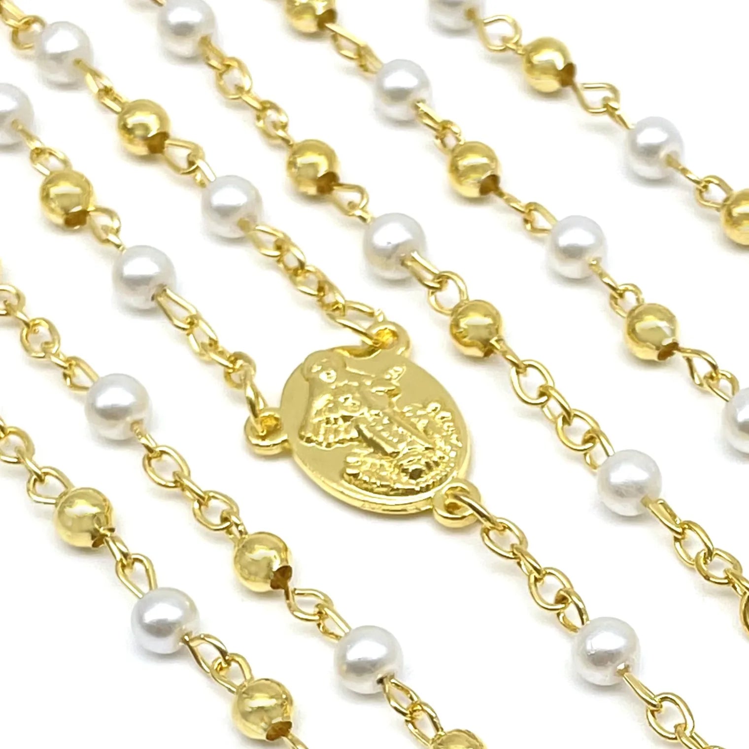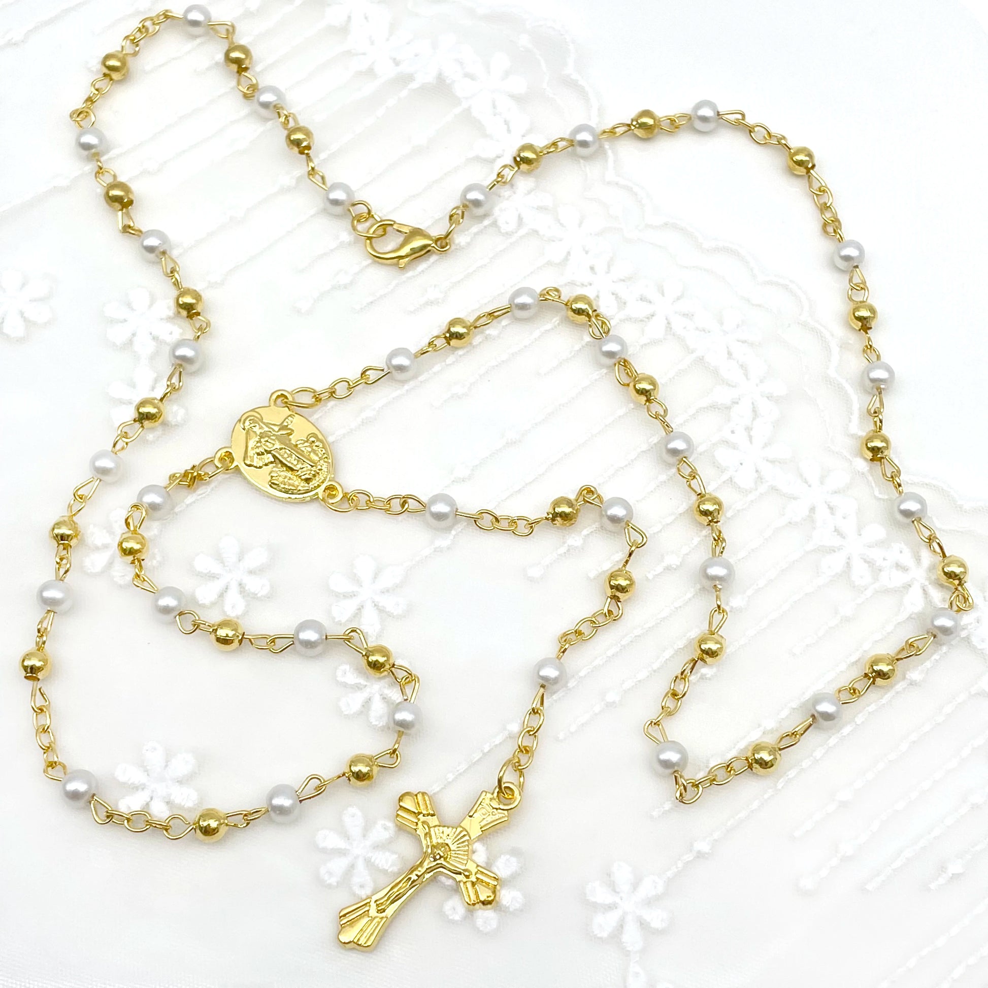 12 Pcs - Baptism Rosary White Gold Party Favors and Gifts