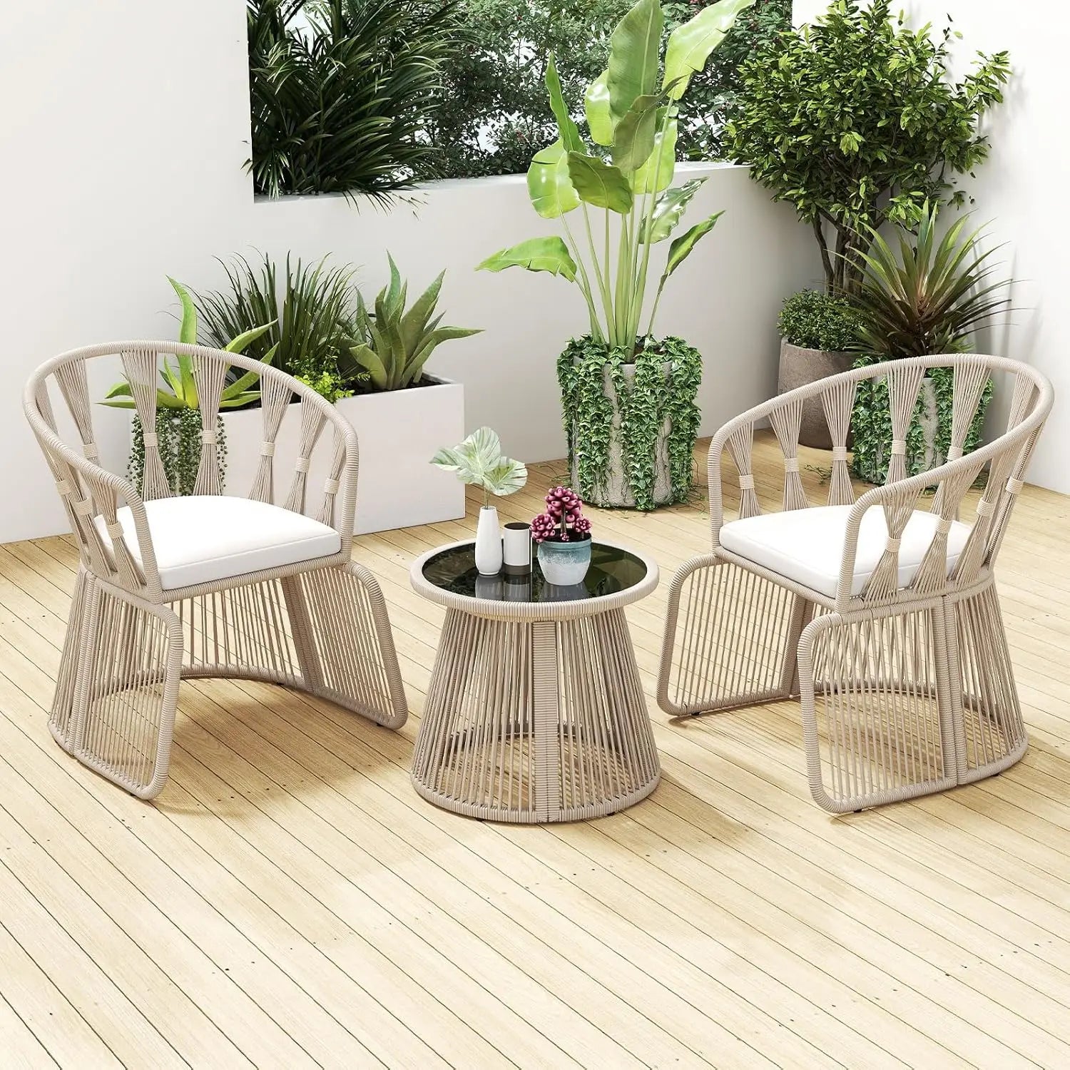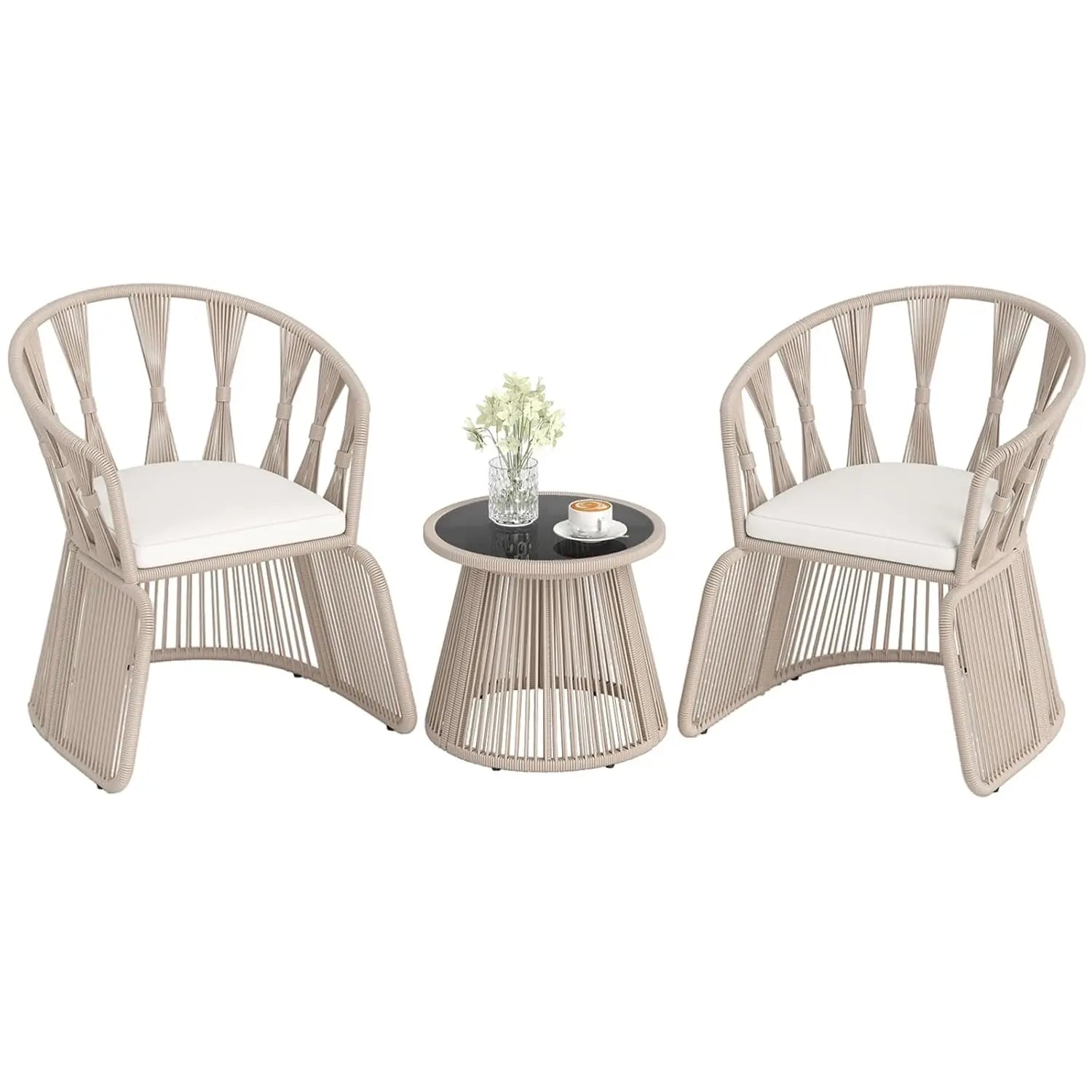 Unique Rope-Woven Design: Experience the blend of durability and style with this hand-woven rope-crafted patio chair set. The sunproof, breathable rope ensures long-lasting beauty and comfort, helping you create a stylish outdoor space.