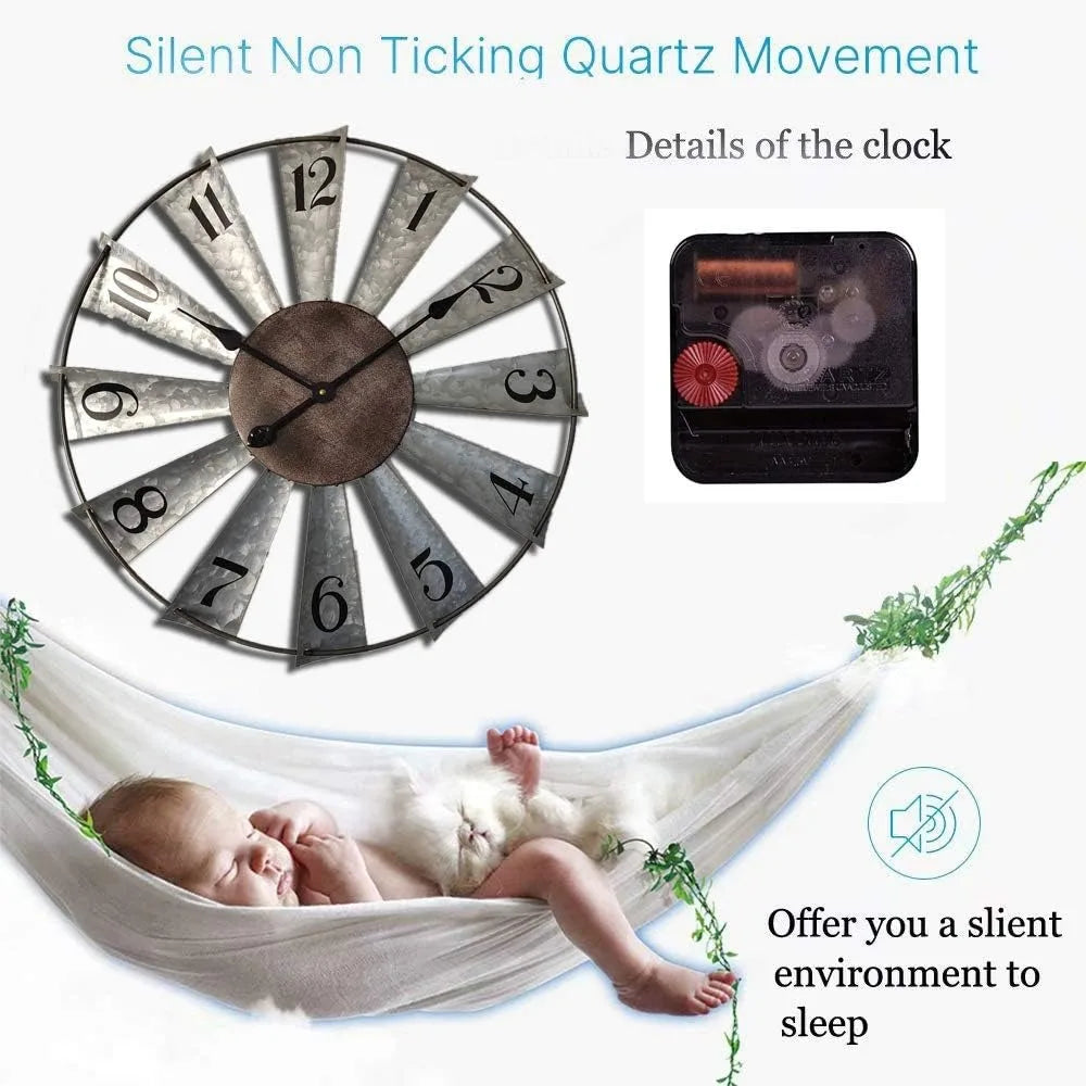 30inch Windmill Distressed Rustic Metal Wall Clocks