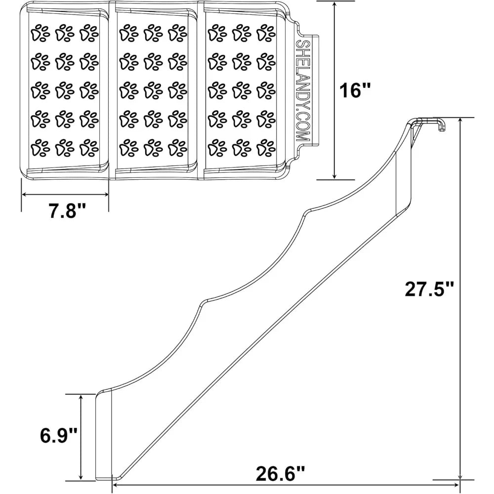 Steps: 27.5 H x 26.6 W - Step: 16" W x 6.9" H