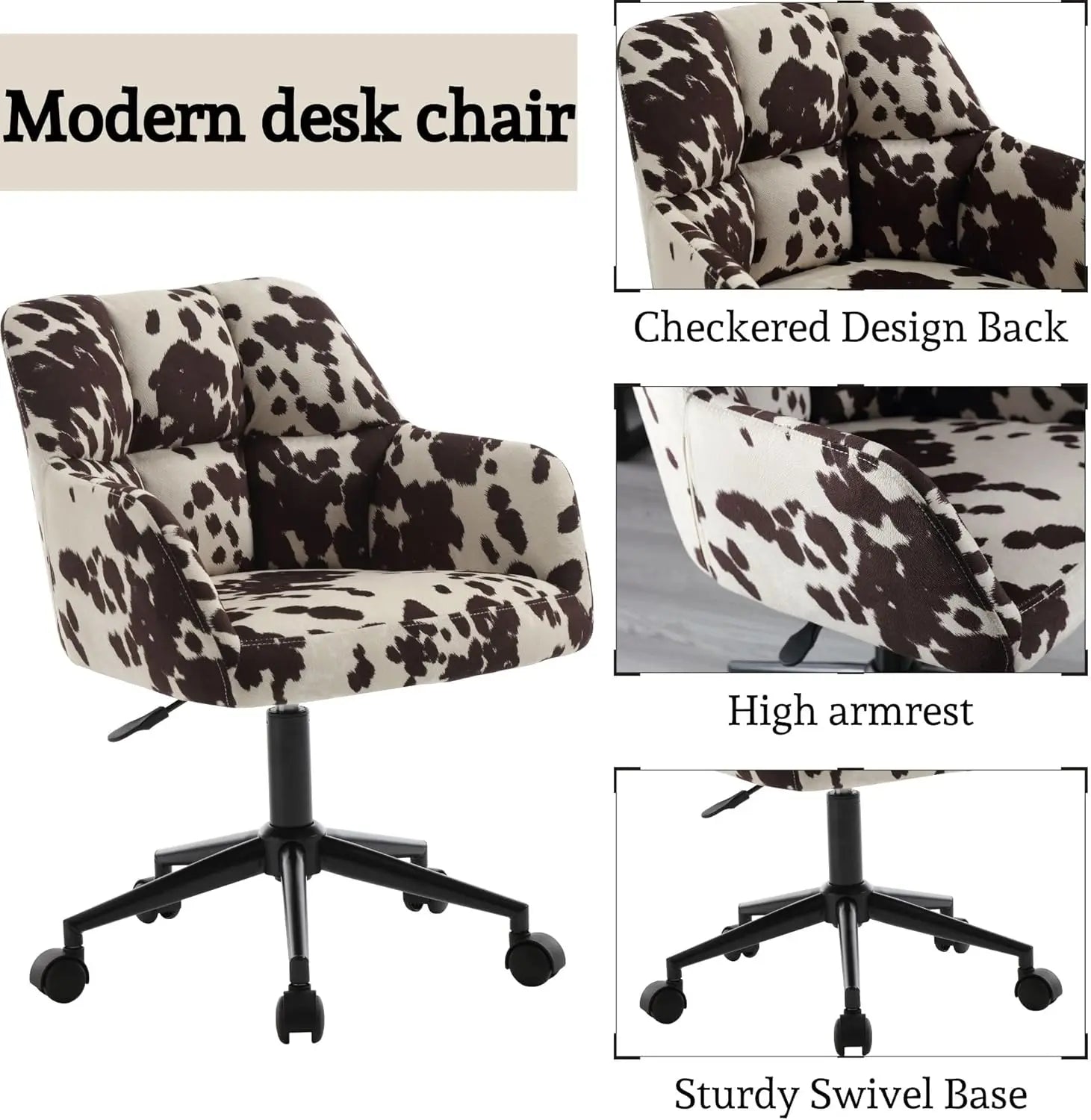 Cow Print Chair ,360°Swivel with Mid Back Support, Armrest, Adjustable-Height and Upholstered