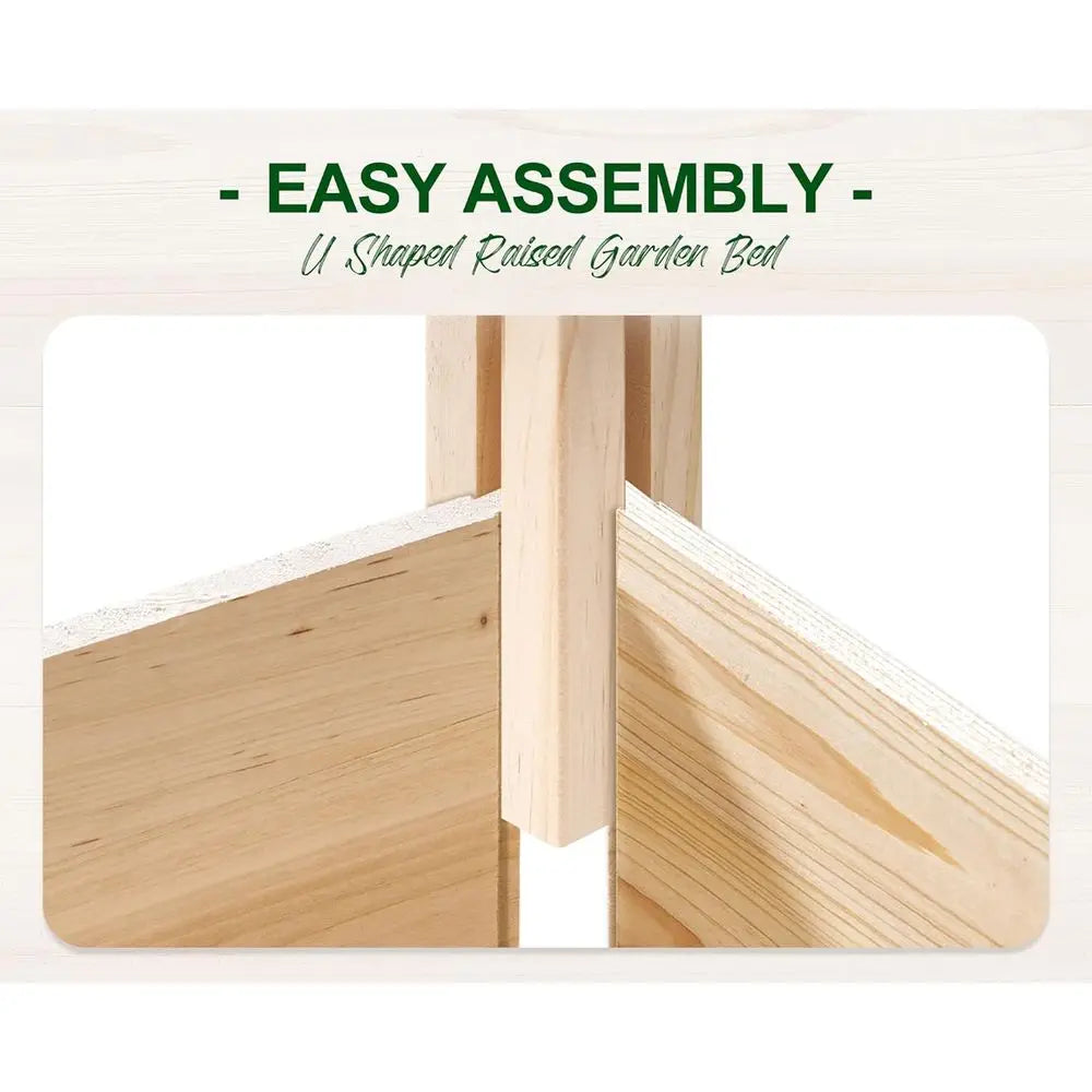 Outdoor Wooden U-Shaped Raised Garden Bed, 7.5ft x 6ft x 1.6ft, 19.6 Deep Planter Box