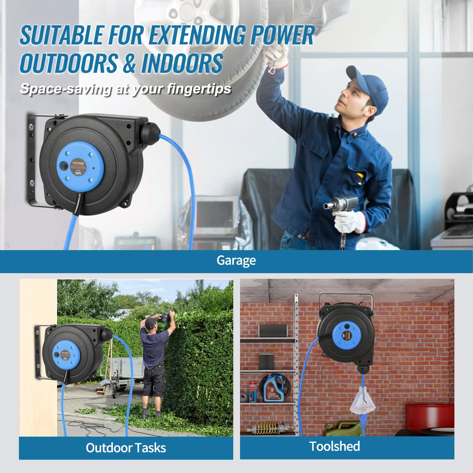 Designed for easy installation in your garage, workshop, or garden, the automatic retracting mechanism makes setup simple, fostering a sense of control and convenience.