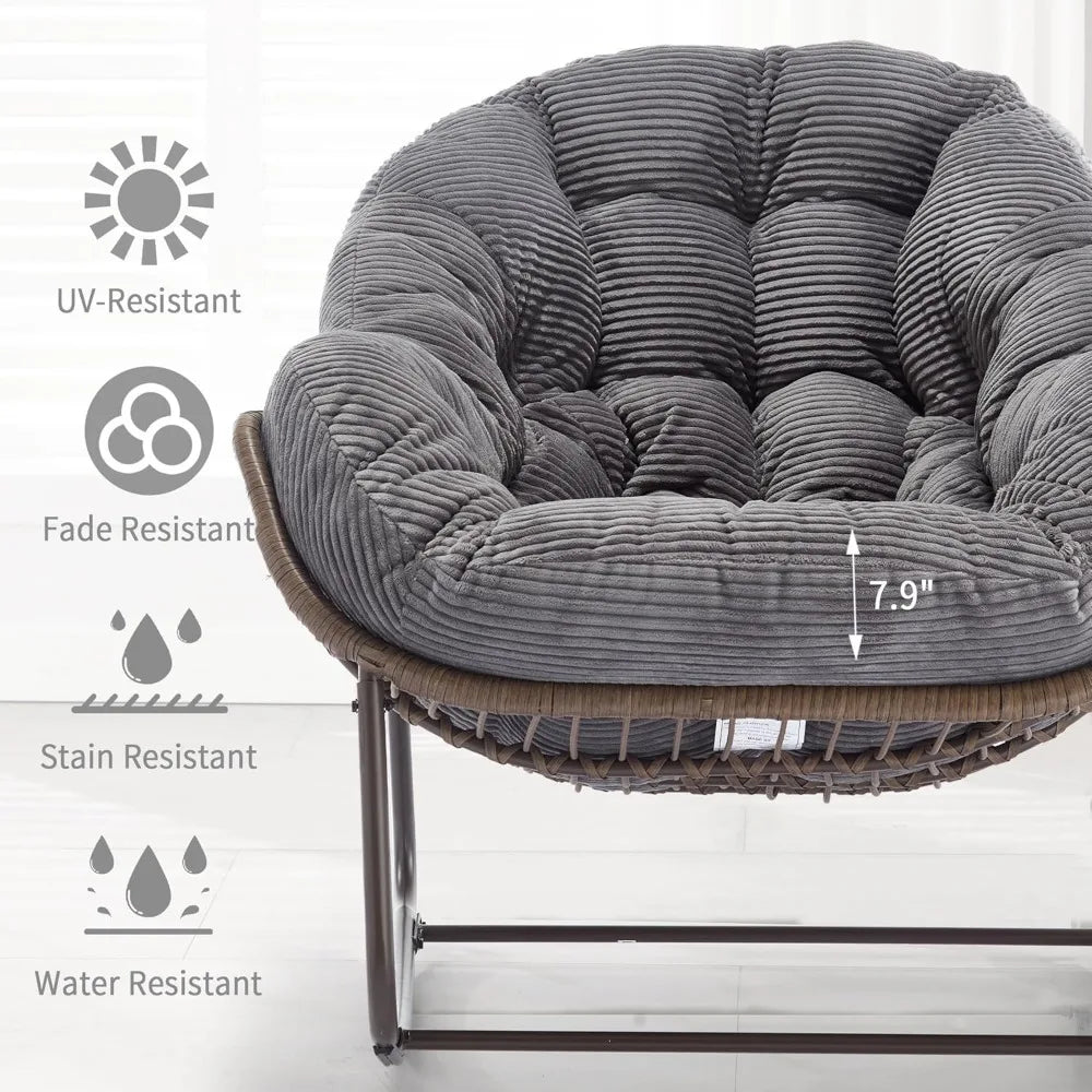 - INDOOR AND OUTDOOR SCENES: This versatile chair is ideal for both indoor and outdoor settings, including gardens, decks, poolside, and living rooms. Enjoy the comfort and fun of this saucer rocking chair anytime, whether indoors or outside