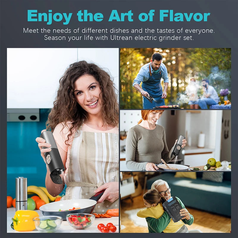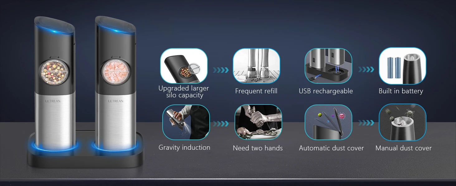 ULTREAN Salt and Pepper Grinder Electric Stainless Steel Salt Pepper Mills with Adjustable Fineness Kitchen Tool