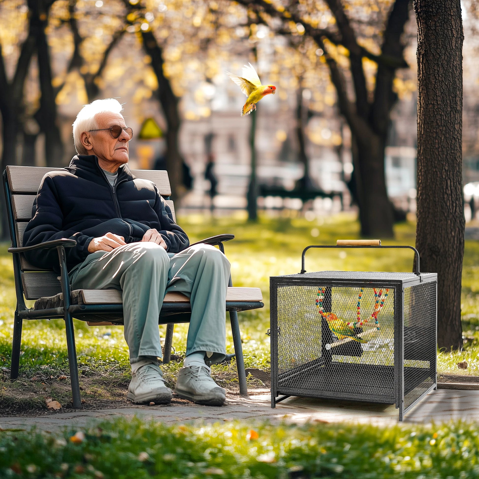 design. Crafted with the utmost care, it ensures that your feathered friend remains secure and content. Equipped with hammock toys and bowls to keep bird species entertained and feeding, while the removable tray allowing for convenient cleaning. Highly recommend to bird owners looking for a versatile and user-friendly option for travel and everyday living